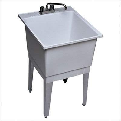 65211 Finish: Bone, Faucet Drillings: Two Holes Shown in white with no faucet drillings Features: -Self rimming laundry sink with recessed drainboard. -Advantage Series collection. -Available in several finishes. -Available in Microban antimicrobial finishes. -Microban finish protects sink surface from the damaging effects of bacteria, mold, and mildew. -3.2 Acrylic construction. -Available in 1, 2, 3 faucet holes. -Lightweight and easy to install. -Easy care with soap and water. -100pct stain resistant, will not discolor or rust. -Built-in drainboard and extra-large recessed shelf. -Thick and durable construction provides high impact resistance that prevents marking and chipping. -Permanent high gloss finish, that will not discolor or rust. -NAHB and CSA certified. -Corstone provides a limited lifetime warranty. -Overall dimensions: 11.5'' H x 33'' W x 22'' D. For more information on this product please view the Sheet(s) below: Specification Sheet